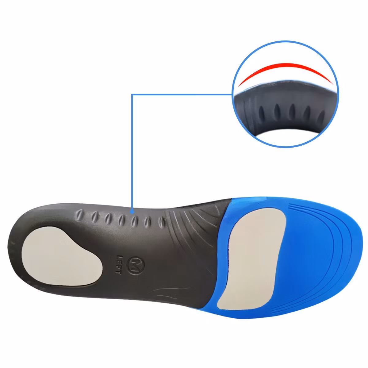 Dessa ergonomiskt utformade inläggssulor ger effektivt stöd för både häl och hålfot. Den mjuka och behagliga skålningen i hälen dämpar stötar och avlastar vid varje steg, vilket minskar belastningen under gång och aktivitet.
