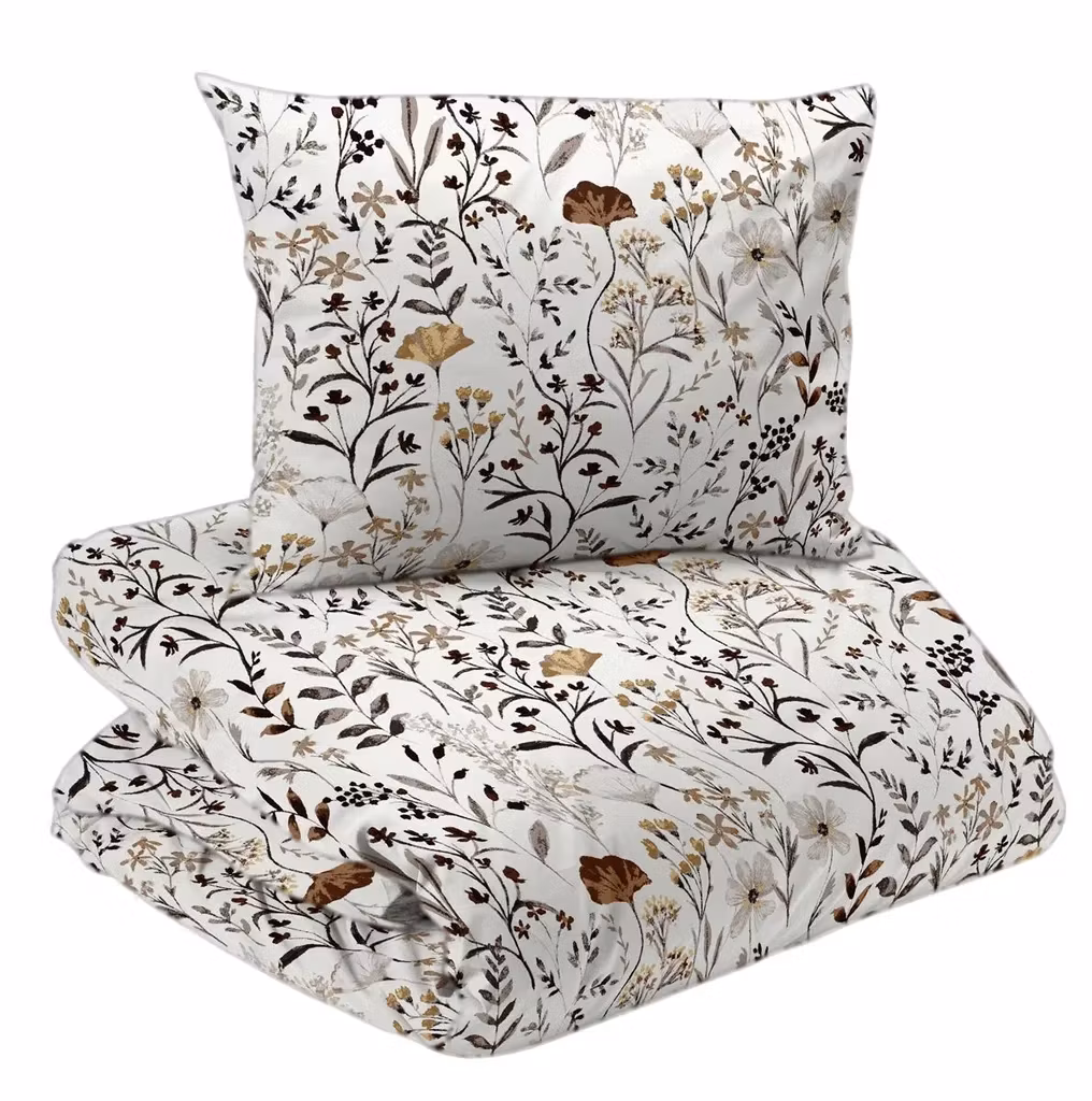 Cecilia Bäddset beige Enkeltäcke 150x210 Redlunds är bäddsetet för dig som vill skapa en varm, romantisk och levande känsla i sovrummet. Det stilfulla mönstret av blommor och blad i vackra nyanser av gult, vitt och rosalila ger en harmonisk känsla som både lugnar och lyfter inredningen. Med detta bäddset blir sängen hemmets mittpunkt och en plats för både avkoppling och drömmar.