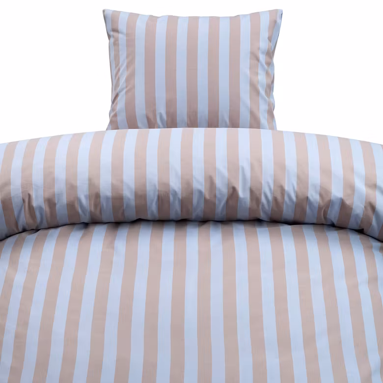 Skapa en varm, lugn och stilren känsla i sovrummet med Thelma Stripe Brun bäddset från Borganäs of Sweden. Det klassiska randiga mönstret med smala lodräta ränder i brunt och vitt ger sängen ett tidlöst och harmoniskt uttryck. Den mjuka färgkombinationen bidrar till en naturlig och vårig känsla som passar perfekt under vår- och sommarsäsongen.